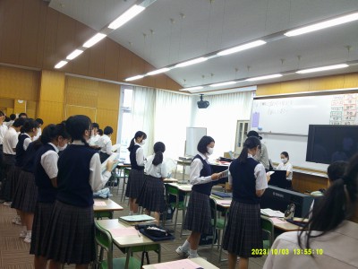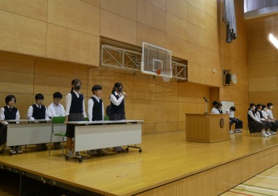 また、将来(今の中学生が高齢者になる頃)の高齢者の人口比率についてもお話があり、いろいろ考えさせられました。皆、真剣に聞いていました。歯科校医の先生、本日はわざわざ三田中学校までお出でいただき、本当にありがとうございました。