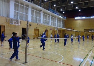 部活動指導員の方に指導してもらっています。スパイク練習です。