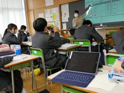 いろいろな教科の補充学習が進められています。取っていない教科の時は別室で自習しています。