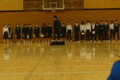 昨日試合のあったバドミントン部とソフトテニス部が入賞いたしました。その表彰です。