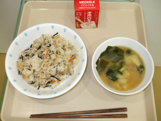 さばの炊き込みご飯・じゃが芋の味噌汁