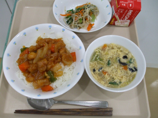 酢鶏丼・もやしのナムル・卵の中華スープ