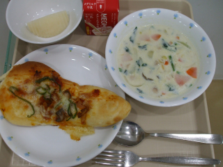 ナンピザ・クラムチャウダー・梨