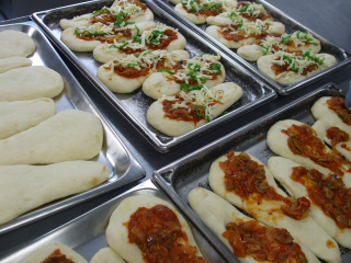 ▼手作りのピザソースとチーズをナンの上にのせて焼き上げました。