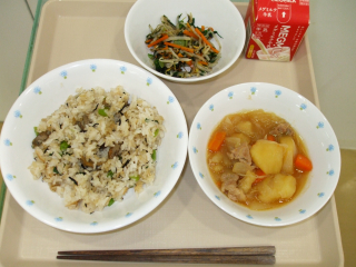 今日は、10月1日の「都民の日」にちなんで、東京都の郷土料理である「深川飯」を食べました。「深川飯」は、あさりが入った炊き込みご飯やぶっかけ飯のことをいいます。