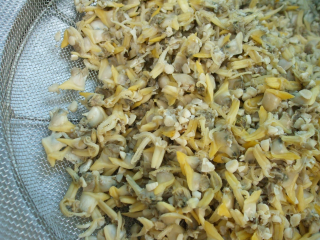 ▼あさりの臭み消しや食中毒防止のため、一度茹でてから使用しました。