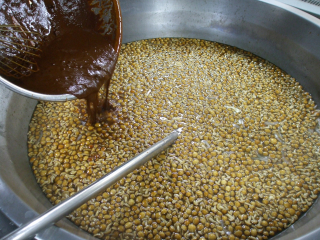▼赤だし味噌汁は、八丁味噌を使用しました。
