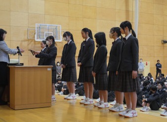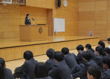生徒の皆さん、とても姿勢がいいですね。生活指導部より冬服について話がありました。