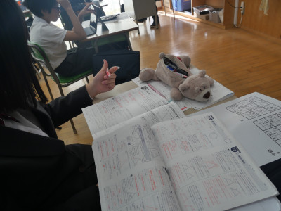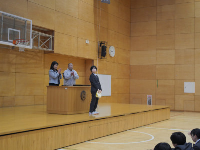 身振り手振りもつけ、立派にスピーチしました。よく頑張りました。